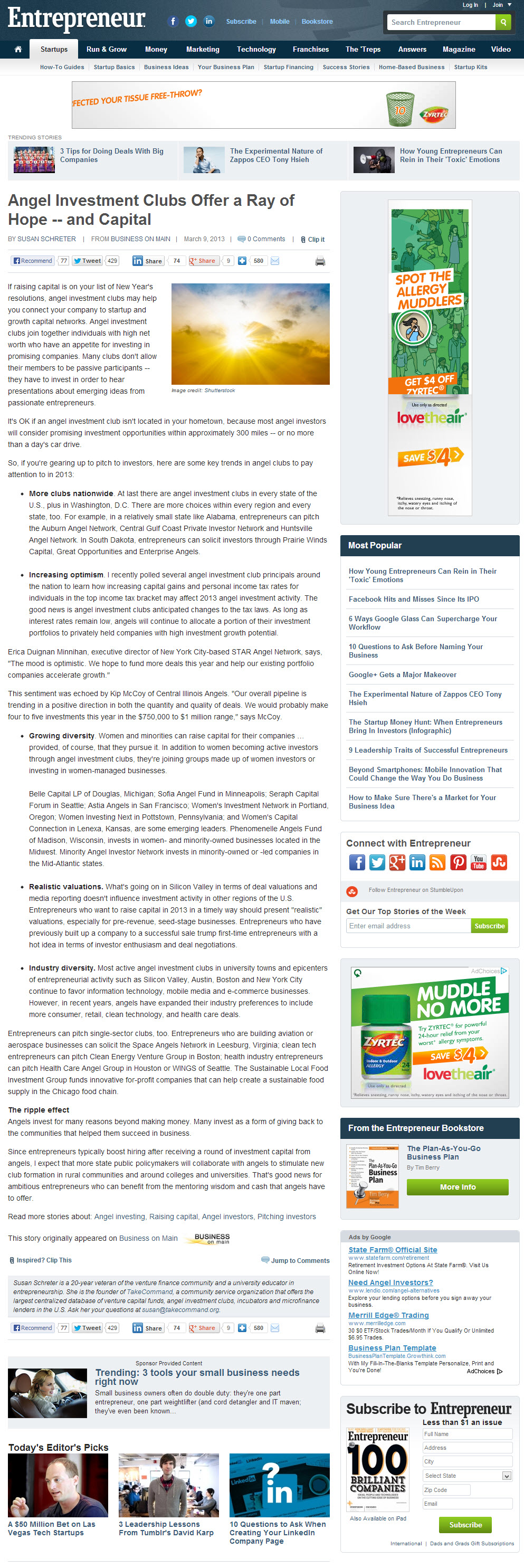 Angel Investment Clubs Offer a Ray of Hope — and Capital | By Susan Schreter