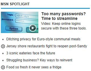 At MSN, writing good headlines posed an interesting challenge — they had to be catchy enough to grab our audience’s attention, but clear enough to make our articles search-friendly. I also worked with editors across MSN to write headlines for strategic promotions. These were short versions of our article or video headlines that ran in prominent areas of MSN with the goal of drawing readers deeper into our site. Here are some samples of my work: